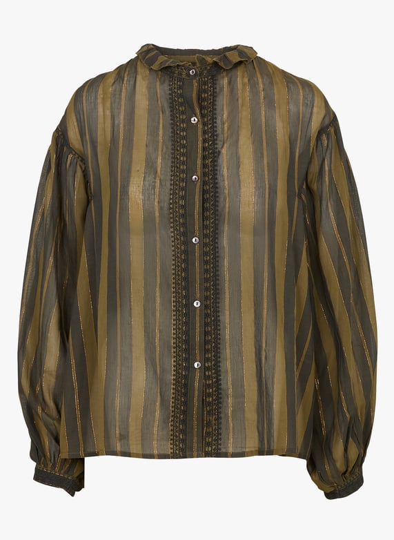 Anika Blouse – Khaki (Stripes Voile). Composition: 98% Cotton, 2% EA.