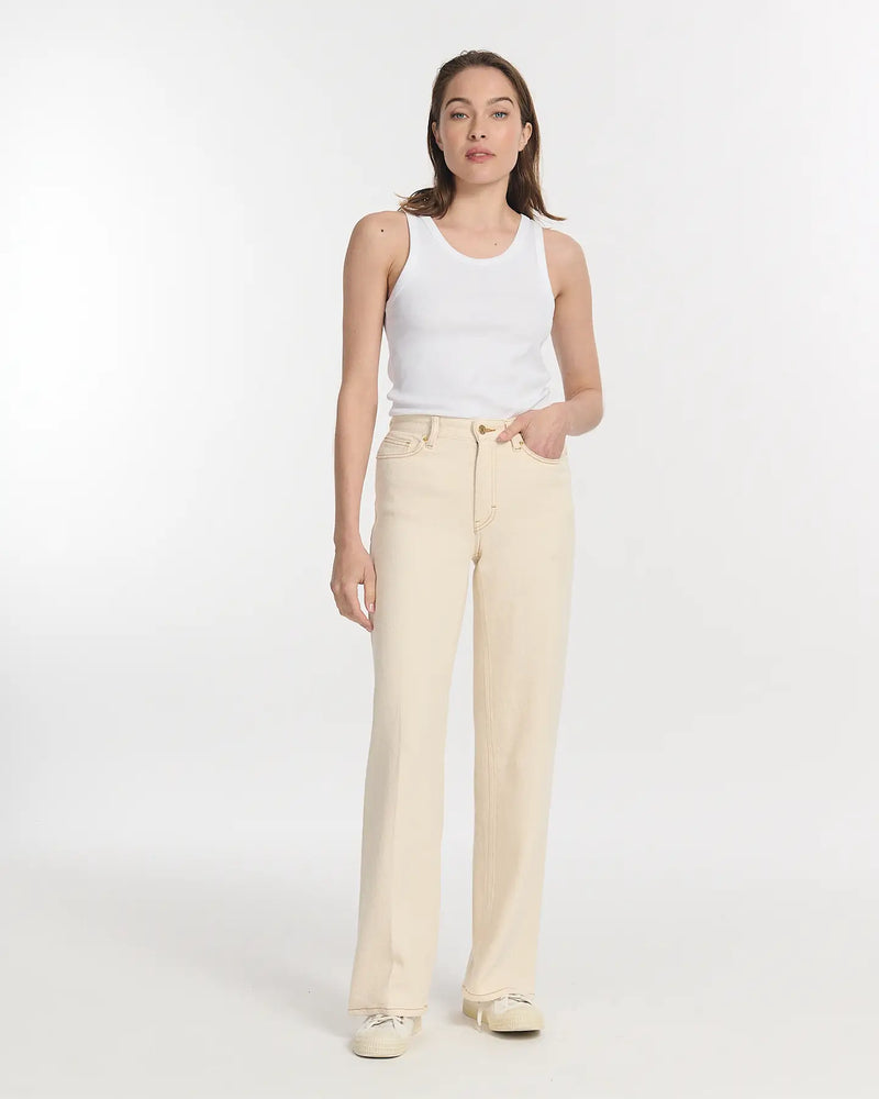 Medium waist regular straight — 100% coton denim.
